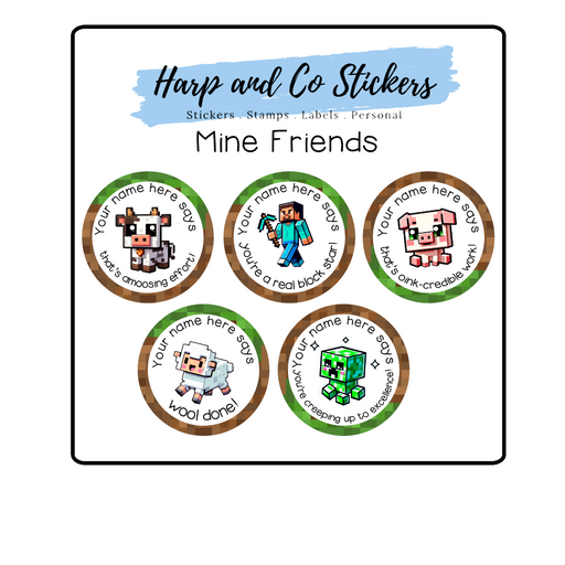 Mine Friends Stickers Show your love for Minecraft with our Mine Friends stickers! Featuring pixel-style favourites like a cow, Steve, pig, sheep a...