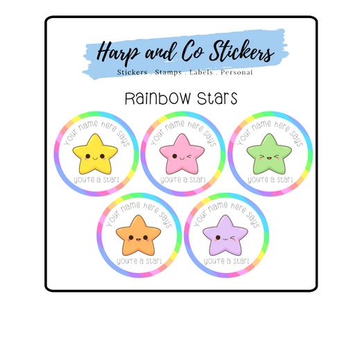Rainbow Stars Stickers Shine bright and celebrate achievements with our Rainbow Stars stickers! These adorable stars in pastel rainbow colours come...